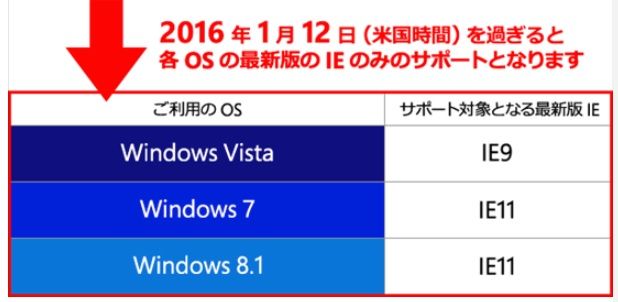 旧バージョンのIEは、同日提供されるセキュリティ更新プログラムが最後となり、